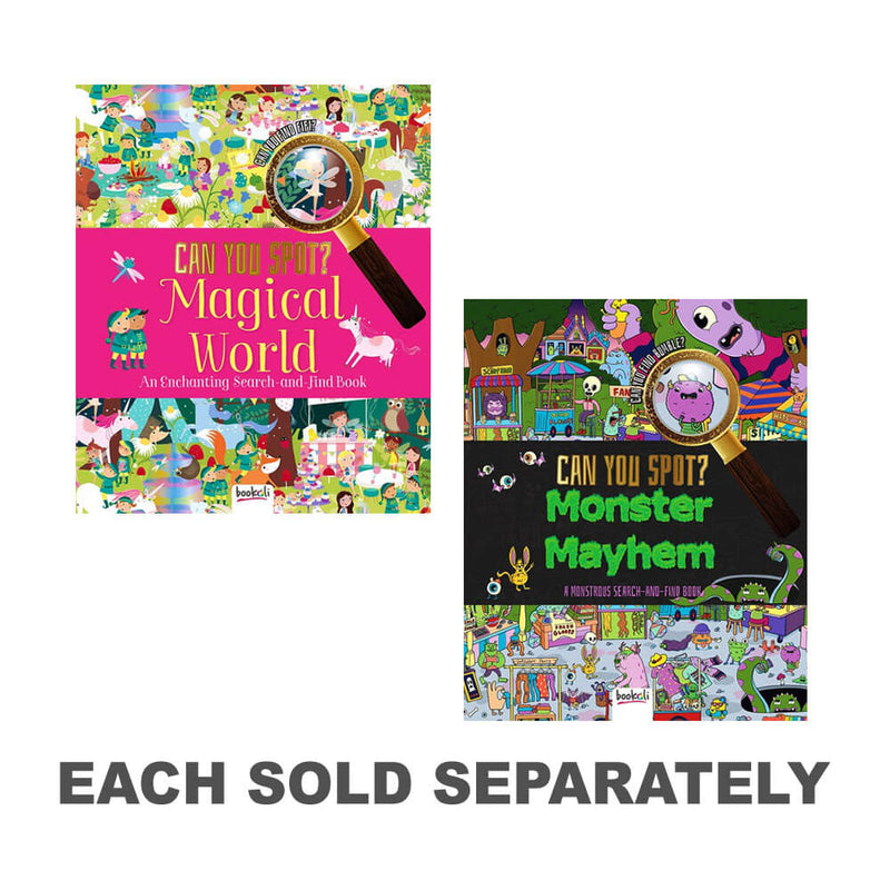 Små børn kan miste sig selv i en fantastisk verden af ondskabsfulde monstre eller det fortryllede hviskende træ med disse sjove bøger om søge-og-find. Fra spiky, fluffy og stinkende monstre til majestætiske enhjørninger og rampete fe, er der så meget at tale om og få øje på. Med sjov rimende tekst kan læsere fnise sammen med eventyrene fra de magiske væsener eller de underholdende antics of Bumble det lille monster, mens de udforsker de travle scener.