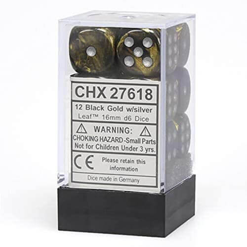 D6 terning blad sort guld/sølv