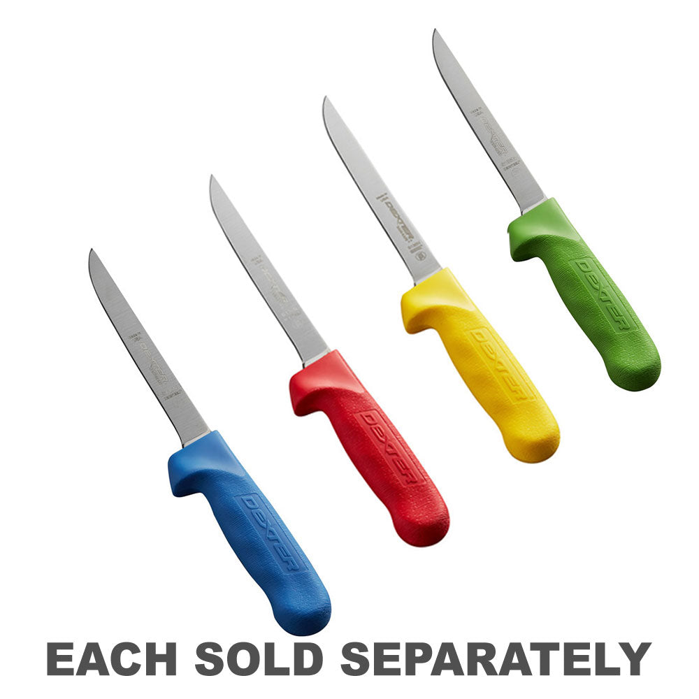 Smal Boning Knife med blåt polypropylenhåndtag. Bygget til at være både hård og sanitær. Et struktureret, glidbestandigt, let at rengøre polypropylenhåndtag tåler både høje og lave temperaturer. En uigennemtrængelig segl med blad-til-håndtag giver det yderste i den santiære kvalifikation. Stodfrit stålblade med højt kulstofindhold med en individuelt jord og slået kant udmærker sig i kommerciel brug.