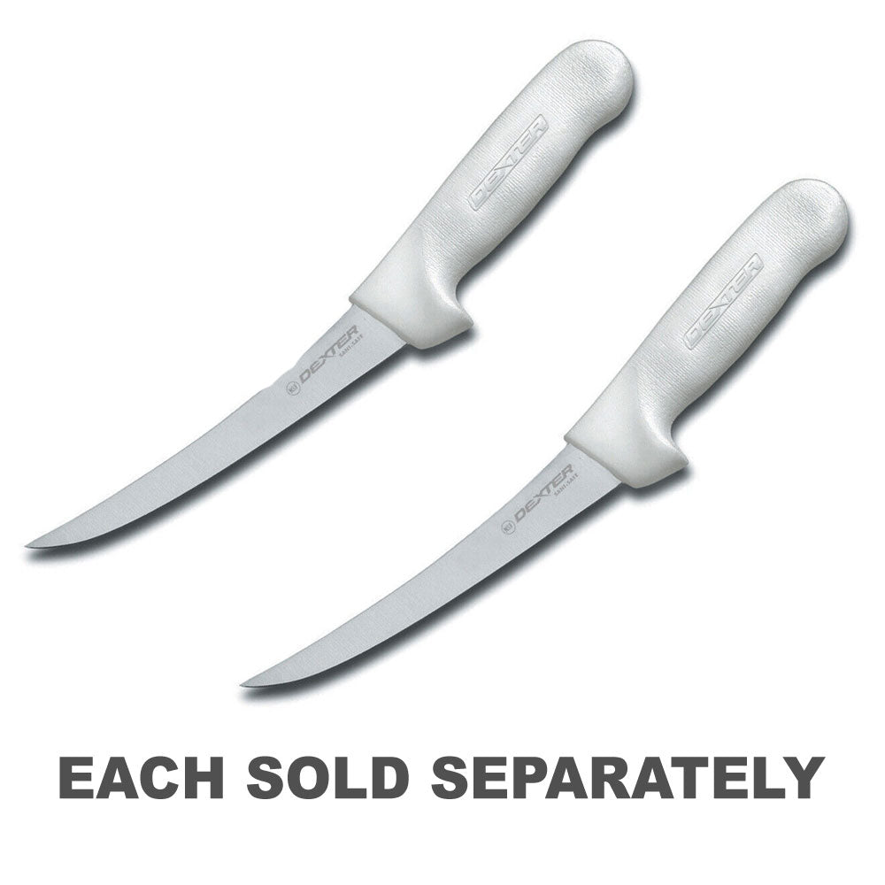 Tynd og skarp, udbenet kniv er gå til klingen til at fjerne knogler fra kød og flå fisk. Der er flere typer af boningknive, der gør forskellige opgaver meget lettere. Når du skærer hårdt kød som oksekød og svinekød, skal du bruge en stiv boner og bruge en fleksibel boner til fjerkræ og fisk. Når du arbejder tæt og omkring knoglen, giver en buet udbenet kniv dig en bedre arbejdsvinkel. Endelig er en smal udleveringskniv fantastisk til at udøve ribben og kødkoteletter, mens du ville bruge en bred boningkniv til kylling og svinekød. SOFGRIP-linjen er det ultimative valg i skridsikrehåndtag. Deres bløde gummi greb håndtag reducerer stress, der kan forårsage træthed og håndledskader som karpaltunnelsyndrom. Fås i sort / hvid, det bløde håndtag giver dig mulighed for at gribe strammere for at forhindre glidning og øge kontrollen. Hvert blad leveres med en proprietær dexsteel, pletfri, høj kulstofstålblad, med en individuelt malet og slået kant