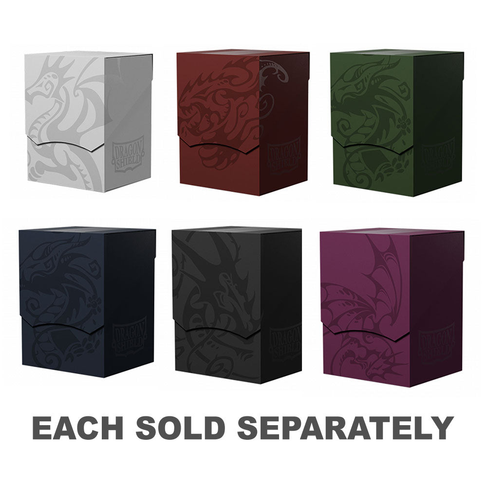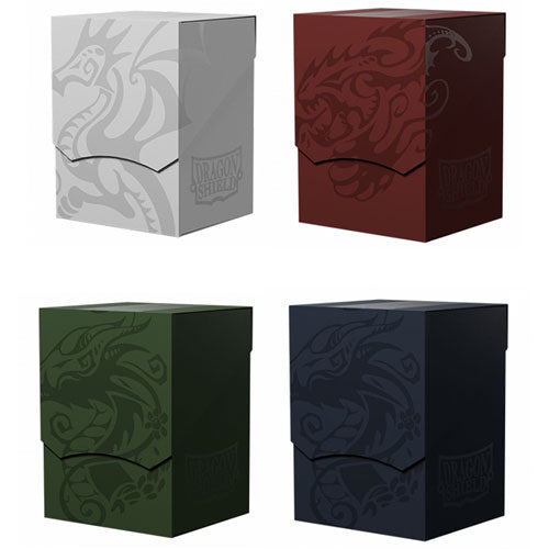 En dyb og tonet rød, med subtil drage prægning og sort interiør. Dækskallen er en elegant og kompakt dækboks, du kan stole på for at holde dine kort sikre og sikre. Låget sidder sikkert, mens den er lukket og kan indstilles under dækskallen for et minimalt fodaftryk. Den dybe udskæring giver let adgang til dine kort. Hvert dækskal leveres med en skillelinje og har et skrivefelt til personalisering og organisering.