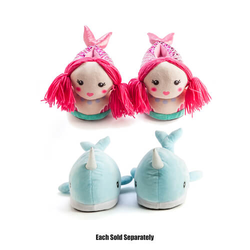 Blive mødt af et par havfruer eller narwhaler hver nat, når du kommer hjem! Disse søde karaktersko er lavet af blød og overdådig velour, og de er så sjovt at have på! Det vil være endnu en grund til, at du vil være glad for at gå gennem din hoveddør om aftenen!