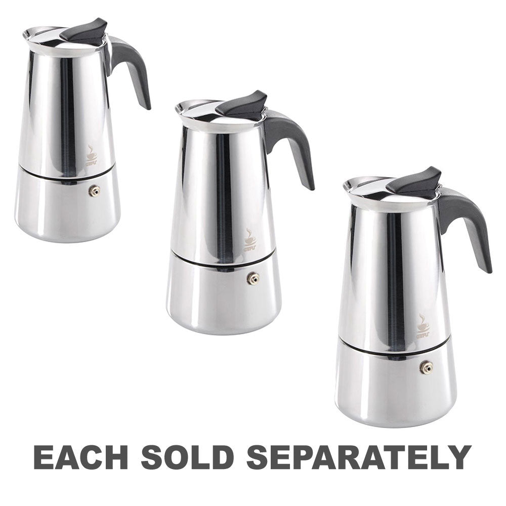 Med Gefus espresso -producent kan du brygge lækker, aromatisk espresso på ingen tid overhovedet. Den moderne, høje enhed er lavet af rustfrit stål og har et sort varmeisoleret håndtag. Bare hæld vand og jordkaffebønner, skru sammen og kog på ovnen, indtil den duftende kaffe er klar - så nyd det. Kapacitet: 6 kopper.