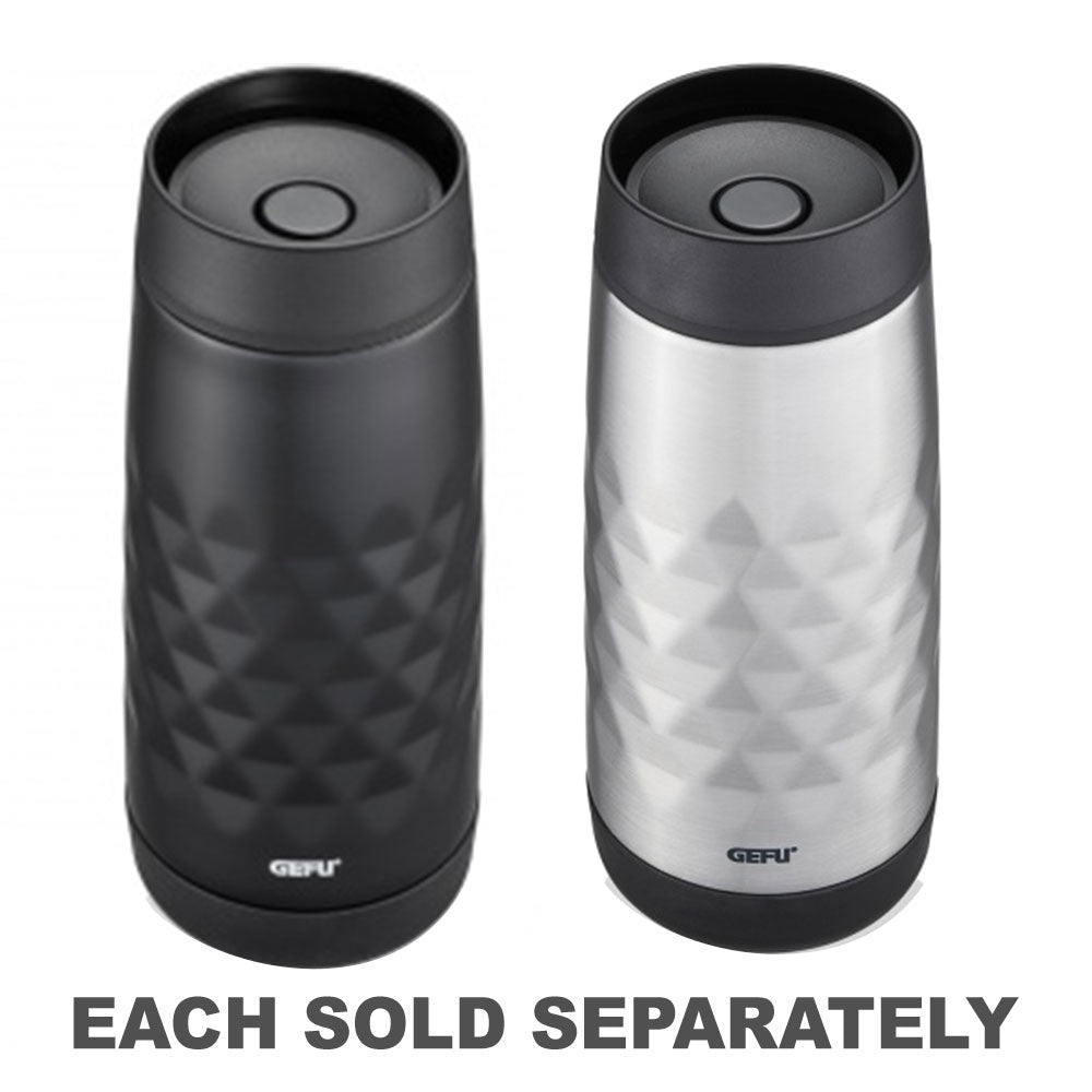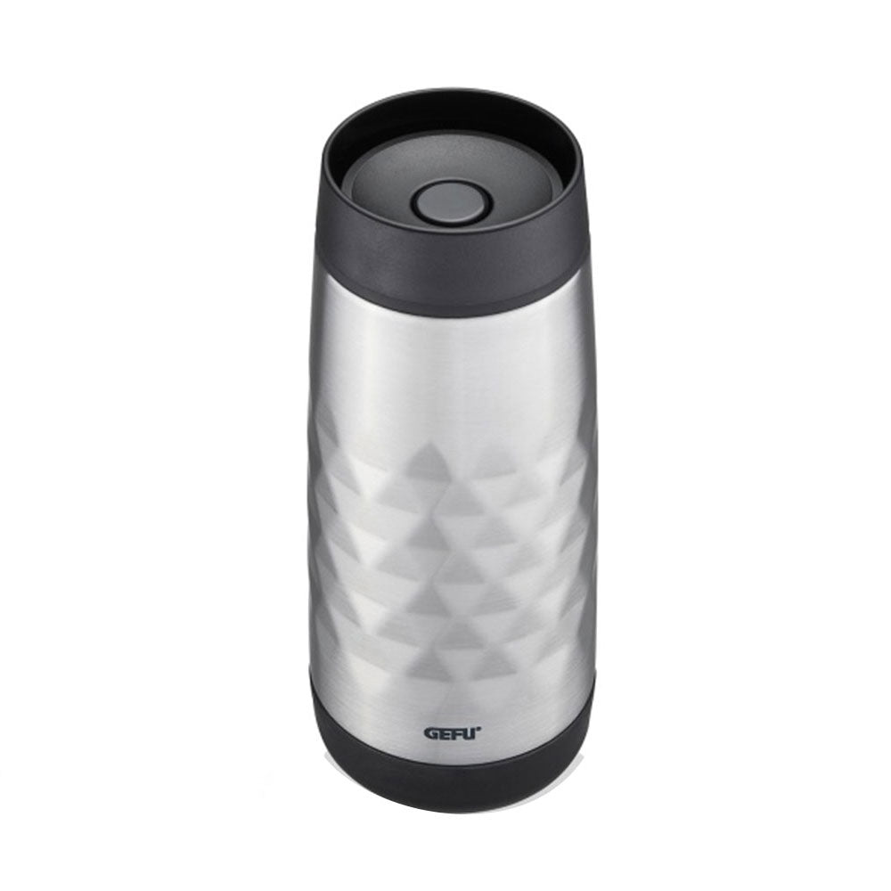 Den cool to-go-ledsager lavet af robust rustfrit stål til skole, arbejde og på farten. Dens dobbeltvæggede isolering holder te eller kaffe dejlig og varm i op til 4 timer og vand eller juice forfriskende koldt i op til 8 timer. Med praktisk lukning af trykknap og 100% lækagesikre.