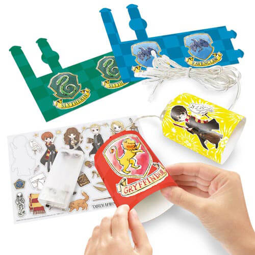 Harry Potter Maker Kitz er sjove at skabe! Opret dine egne Hogwarts senere. Der er 10 L.E.D -lanterne lys, der inkluderer husene Gryffindor, Slytherin, Ravenclaw og Hufflepuff. Tilpas lanternerne med klistermærker. Kit inkluderer 30+ klistermærker. Kræver 2 x AA -batterier (ikke inkluderet). Velegnet til alderen 6+.