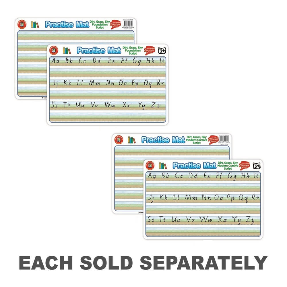 Børn vil elske at øve deres færdigheder i læsefærdigheder og talekund med disse engagerende og farverige praksismåtter. Det er vigtigt, at læring kan være sjove praksismåtter er det eneste produkt på markedet, der er skræddersyet til den australske læseplan. Matten er unik for dette produkt og kan bruges med en tør sletningspen, så det kan tørres rent til brug igen og igen. Størrelse: 44,5 cm x 28,5 cm hver. Velegnet til børn 3+.