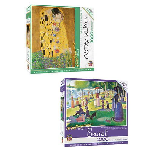 Dette mesterværker 19,25 "x 26,75" 1000pc Det mest berømte mesterværk gennem tidene, Mona Lisa af Leonardo DaVinci. Dette puslespil er lavet af linnedmateriale, der gør det lettere at gribe og se med intet-blænding. Dette linned puslespil er den perfekte gave til enhver puslespil! For at reducere deres indflydelse på vores miljø er det spånplade, der bruges i disse gåder, lavet af genanvendt materiale.