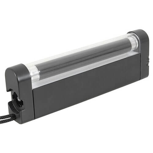 Dette vil ikke fylde et mørklagt partirum med hvide glødende tænder. Det fungerer dog godt i et lille rum. Inkluderer en lille pletlys og håndbærestrop. Sjovt når camping osv. UV -røret er 4 watt bedømt.