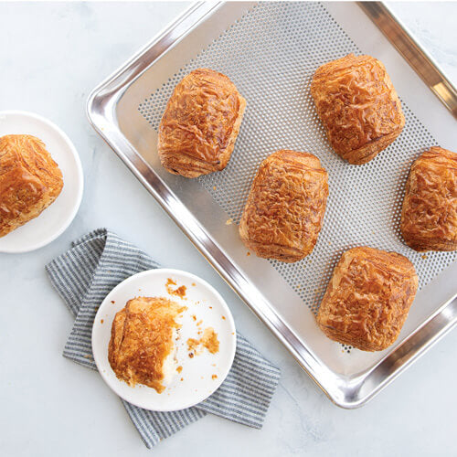 Nordic Wares Naturals perforerede sprød halvlade er lavet af rent aluminium til overlegen varmeledningsevne og producerer ensartede jævnt brunede bagværk hver gang. Derudover er luftstrømmen, der er skabt af denne Pan's små huller, perfekt til, når du vil have en sprød ydre skorpe til dine bagt varer som brød, croissanter, middagsruller, pizza, kringler og mere.