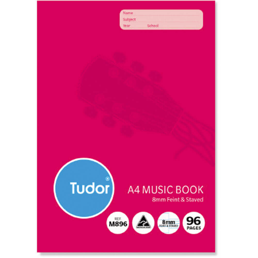 Music Book - Olympic - A4 - Feint & Staved - 96 Page Tudor Music Books With Staples på midterste sider