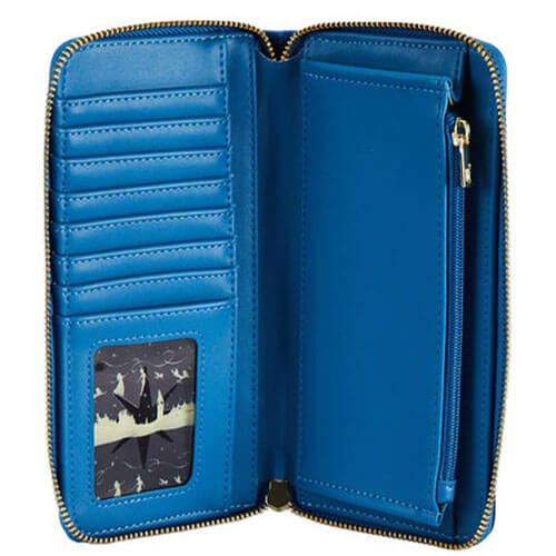 Rejsen til aldrig land begynder med tro, tillid og en lille smule pixie -støv. I dette magiske design styrer Peter Pan og Tinker Bell Wendy, John og Michael på tværs af de drømmende London -himmel. Big Ben er Aglow bag dem, når de svæver foran - bogstaveligt talt! Uret ansigt og vinduer i tårnet glød i mørke! Den anden stjerne til højre, der fører til aldrig land, ses på bagsiden af tegnebogen blandt natskyerne. Med en fantastisk applikation og broderiarbejde, der ledsager den ikoniske scene, som en vidunderlig tanke, vil dette design få dig til at stige fra gulvet!