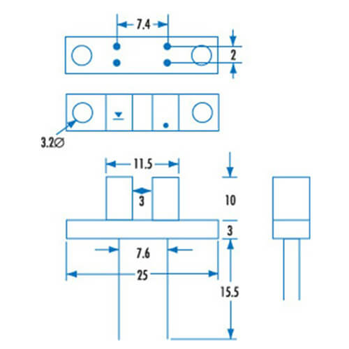 Denne enhed giver dig mulighed for at slå et kredsløb til og fra optisk. Det består af et støbt plastikhus med en IR -LED mod en fototransistor på tværs af et hul. Ethvert objekt i kløften afbryder IR -strålen og skifter følgelig fototransistoren til og fra. Enheden er meget hurtig og ideel til tælling, timing eller sensing. Full specifikationer leveres med hver enhed.