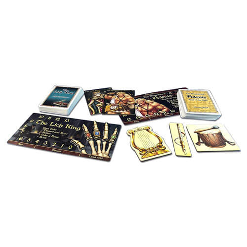 Red Dragon Inn: Allierede Adonis mod Lich King udvider festen på Red Dragon Inn med en ny helt og en ny skurk. Disse Archenemies bringer ny mekanik og sjov til festen og kan kombineres med ethvert Red Dragon Inn Base Set. Lich King inkluderer et sidedæk, der tillader ham at blive spillet som chef i boss -kampvarianten introduceret i Red Dragon Inn 6: skurke. Som en ekstra bonus inkluderer dette sæt brugerdefinerede spillermåtter og dækdelere, der er kompatible med Red Dragon Inn 5: The Character Trove!