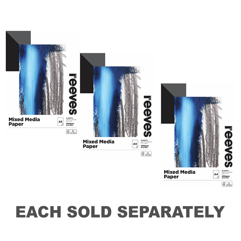 - Med 15 ark papir af høj kvalitet giver Reeves 200 gsm blandet kreditmediepude den perfekte platform til at frigøre din kreativitet og skubbe grænserne for dit kunstneriske udtryk.