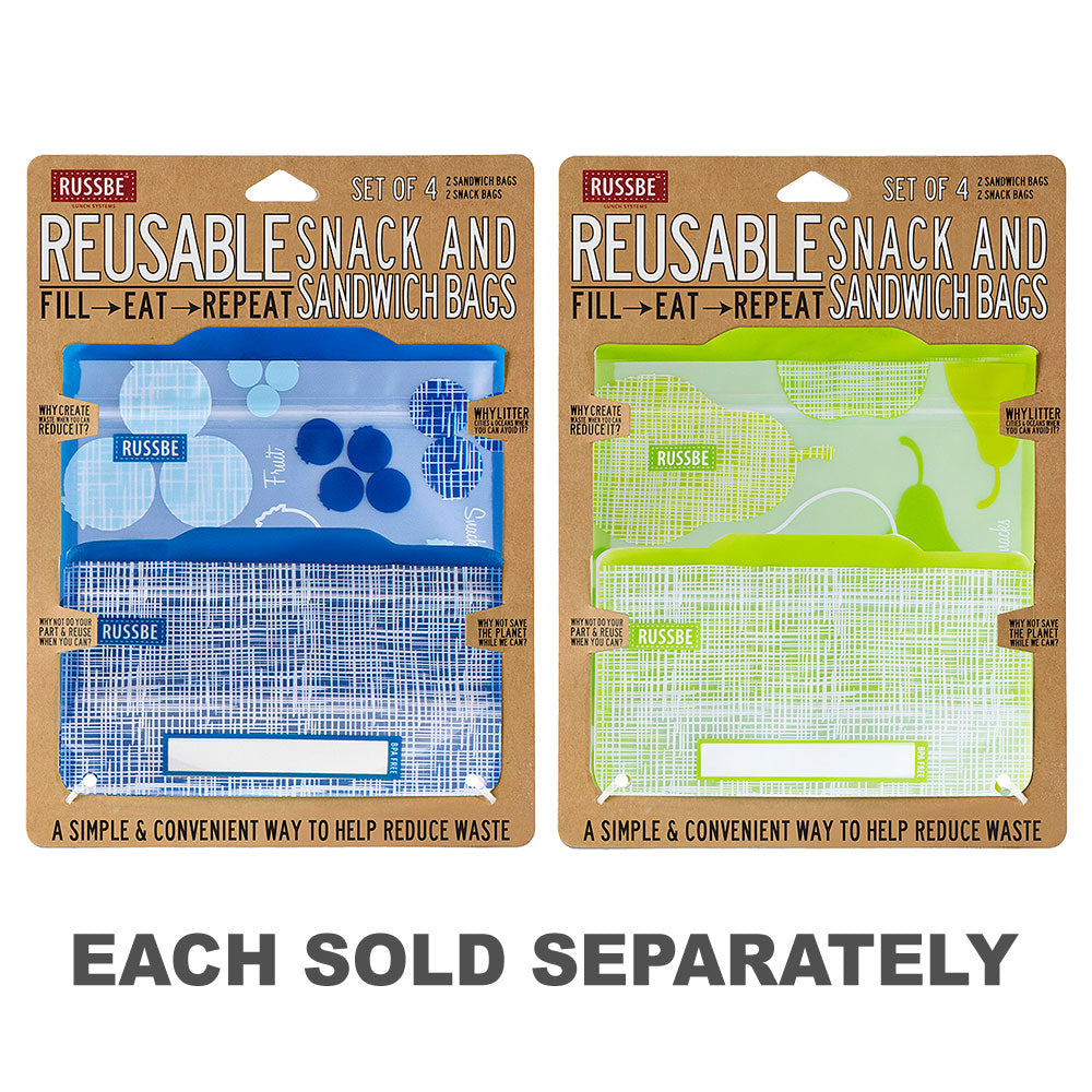 Holdbart og genanvendelig er dette sæt af 4 snack- og sandwichposer fra Russbe en miljøvenlig og trendy måde at holde mad frisk på. Med forstærkede sømme og en låseforsegling for at holde mad frisk, sikrer det knækkede standup-design en rodfri snack/måltidsoplevelse. BPA, PVC, Latex og Phthalates-Free, du kan være sikker på, at du tager et sundt valg for dig og din on-the-go-familie-ideel til opbevaring af rester, marinering af fødevarer eller når du pakker frokost til arbejde eller skole.