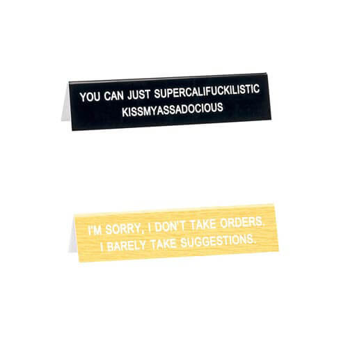 Opbryd monotonien af arbejde og bring nogle LOL'er til kontoret med dette blå skrivebordsskilt fra Say What?. Billedtekst lyder: 'Når en mand går på pension, bliver han til sin kones fuldtidsjob'. Produkt måler 14,5 cm x 3,5 cm.
