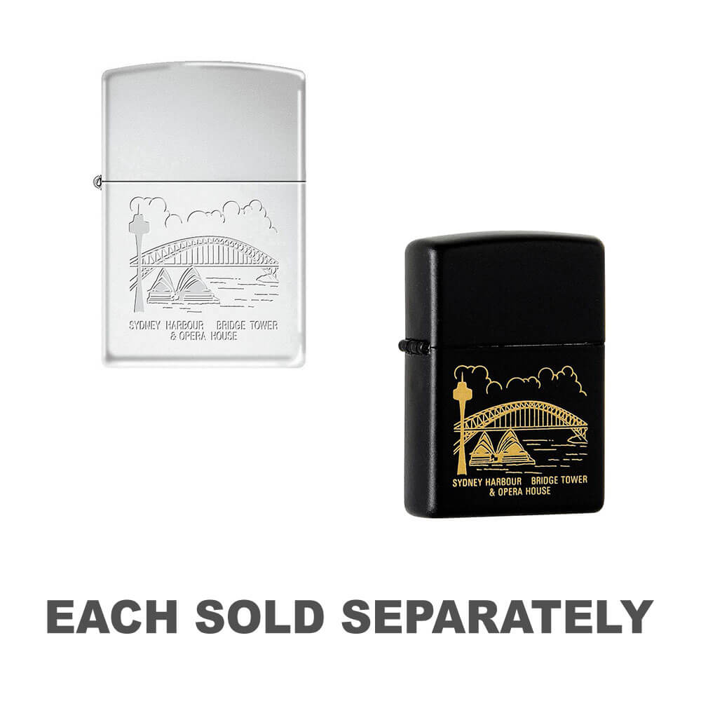 Den høje polske krom Sydney Harbor -lighter er skabt med en pulvercoat, der påføres elektrostatisk på messingkassen. Både den attraktive gaveæske og papindsatsen er lavet af vedvarende materialer og er 100 procent genanvendelige. Den patenterede 'One Box' er attraktiv, let at håndtere og designet til at vise mere af lysere end nogensinde.
