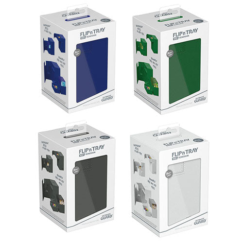 Den fremtrædende ultimative vagtdækboks: Et tidløst monokoloreret design med stærk magnetisk lukning, kort- og terningsbakker til sikker opbevaring af dit dæk og en resistent, men glat Xenoskin -overflade. Leder du efter yderligere sikkerhed? Med plads til 100 dobbeltærmet eller 120 enkelt-ærmer kort i standardstørrelse har flip'n'tray 100+ det hele.