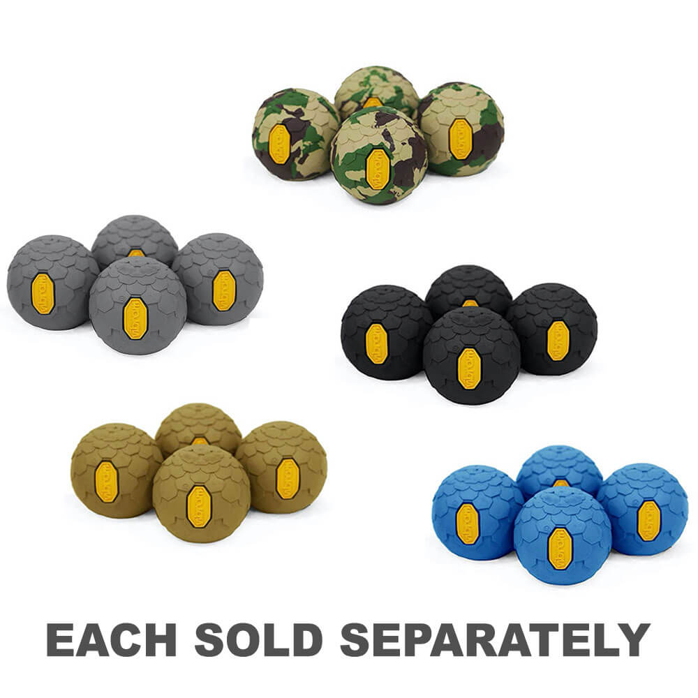 I samarbejde med Vibram udviklede Helinox disse runde gummifødder for at hjælpe med at sikre din stol på hård jord og glatte overflader. Vibram -gummiforbindelsen er klæbrig, holdbar og vandt '; t Mark Backcountry granit eller dit hjem' s trægulve, og den runde form tilføjer lidt mere overfladeareal til at hjælpe med at udligne synke i blødere jord. Størrelsen på 45 mm fungerer med Helinox 's formand, stol to og stol nul.