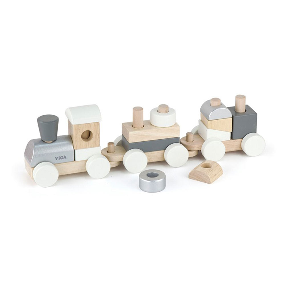 Dette stablingstog fra Viga er lavet af bøgetræ af høj kvalitet og designet i skandinavisk stil. De 14 let at-graf træblokke slot på stænger på fladvogne, hvilket giver en stor mulighed for at øve fine motoriske færdigheder. For endnu mere legeværdi: Blokkene kan også bruges til stabling, bygning og sortering, og de glatte rullende togbiler løsnes for at forkorte toget eller lade børn lege med det individuelt Størrelse: 408 x 120 x 80 mm Sikkerhed: Alle viga-legetøj er lavet med ikke-giftige maling og blæk og overholder EN71 & ASTM legetøjsstandarder. Alder 18 måneder +