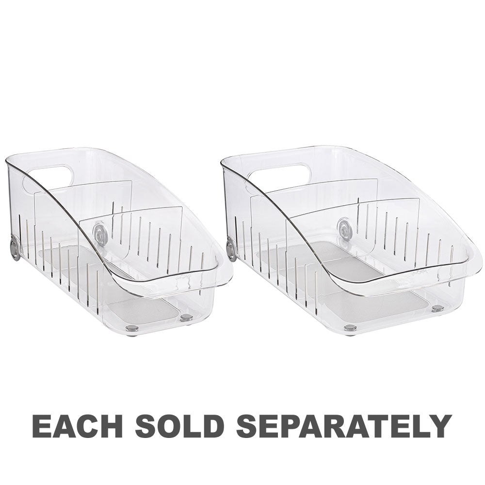 Organiser de højere og bulkere genstande i dit køleskab med udrulningskøleskabet fra YouCopia. Med justerbare skillelinjer for bedre at organisere dit køleskabsindhold, skal du nemt hente genstande fra tilbage ved let at bruge skuffens glatte hjul og robuste håndtag, så du kan trække genstande fremad uden at forstyrre alt i skuffen.
